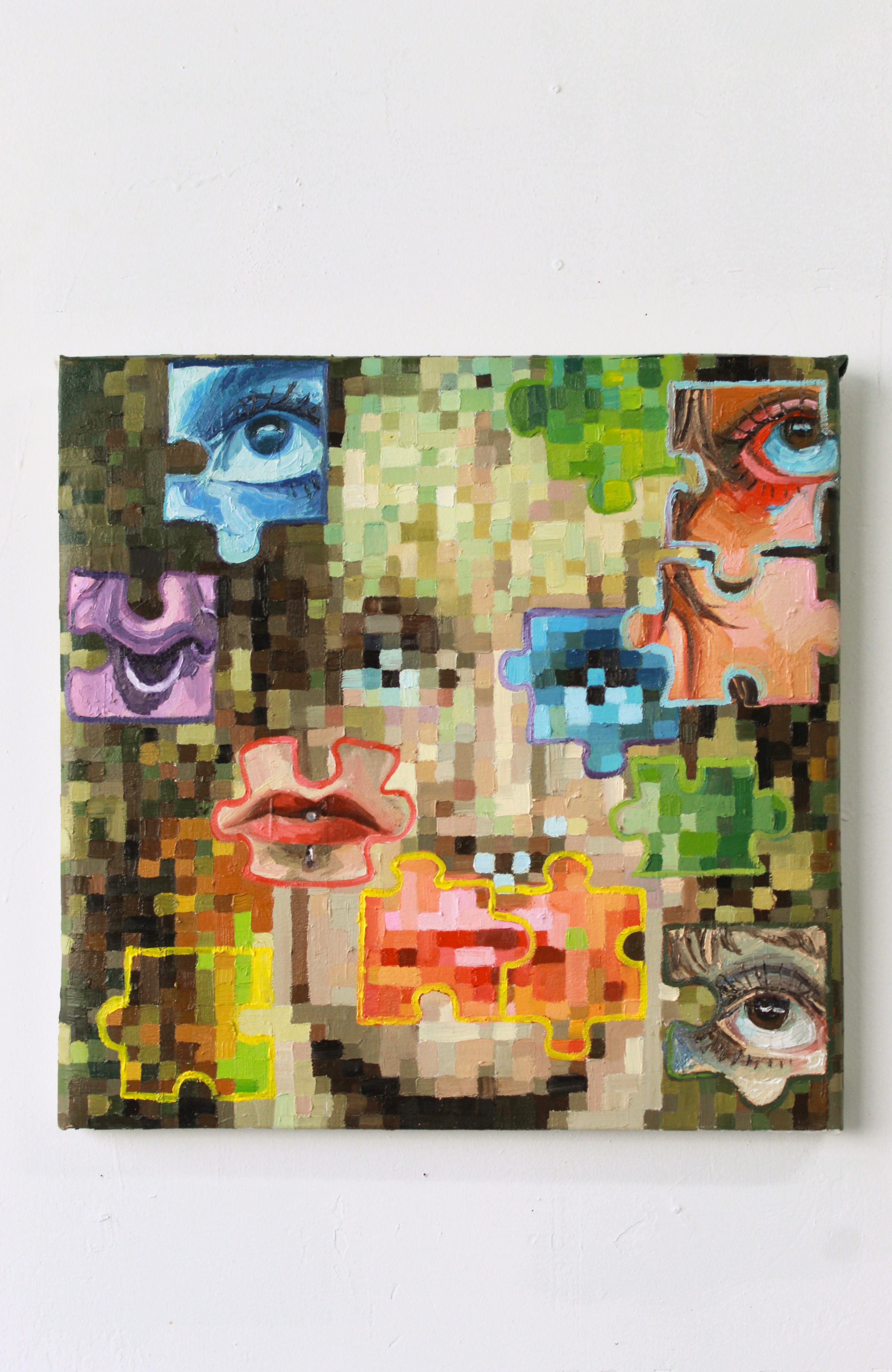 I thought about my identity in terms of intersectionality and how each “piece” of my identity made up the “puzzle” of who i am. My initial digital collage had puzzle pieces with different image-transfers of people/places/anything that i felt like shaped me into the person i am today, which i didn’t go with, but i think is something i want to revisit (maybe outside of the context of a puzzle piece). I ended up making an entirely pixelated portrait of myself, with different puzzle pieces on top highlighting different parts of my face. I titled the work, Missing Piece.